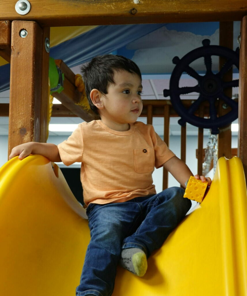 In-Center Therapy takes place in welcoming, themed environments like our indoor playground, Train and Puzzle Room or Club Chill – spaces created to foster language, emotional regulation, and social engagement. These centers are equipped to deliver structured activities and 1:1 ABA therapy services using a wide range of center-based autism therapy tools and visual supports.